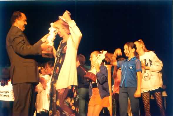 L'assessore di Chianciano consegna alla Maestra Lidia Turchi, della scuola di danza "New Day" di Roma, il trofeo I° Classificata sezione Danze Moderne - Edizione 1997